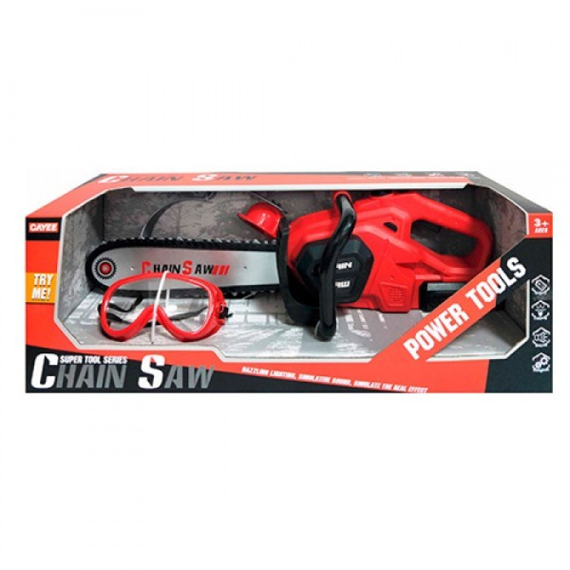 При включенні бензопили ББ KY-106819 крутиться стрічка і інструмент видає звук справжньої бензопили. Швидкість обертання ланцюга регулюється. У наборі з бензопилою є захисні окуляри і навушники. >Матеріал: пластик
