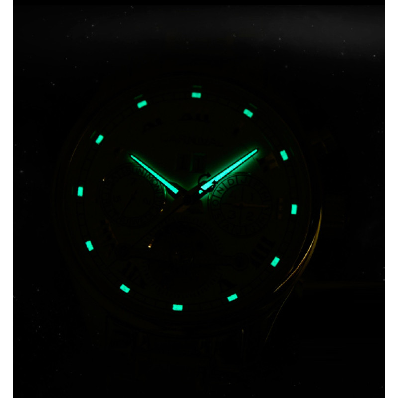 Чоловічі механічні годинники Carnival – це втілення престижу та надійності у кожній деталі. Оснащені високоточним японським механізмом із 25 каменями, вони забезпечують стабільну та довговічну роботу. Завдяки сапфіровому склу годинник стійкий до подряпин і зберігає бездоганний вигляд протягом багатьох років.