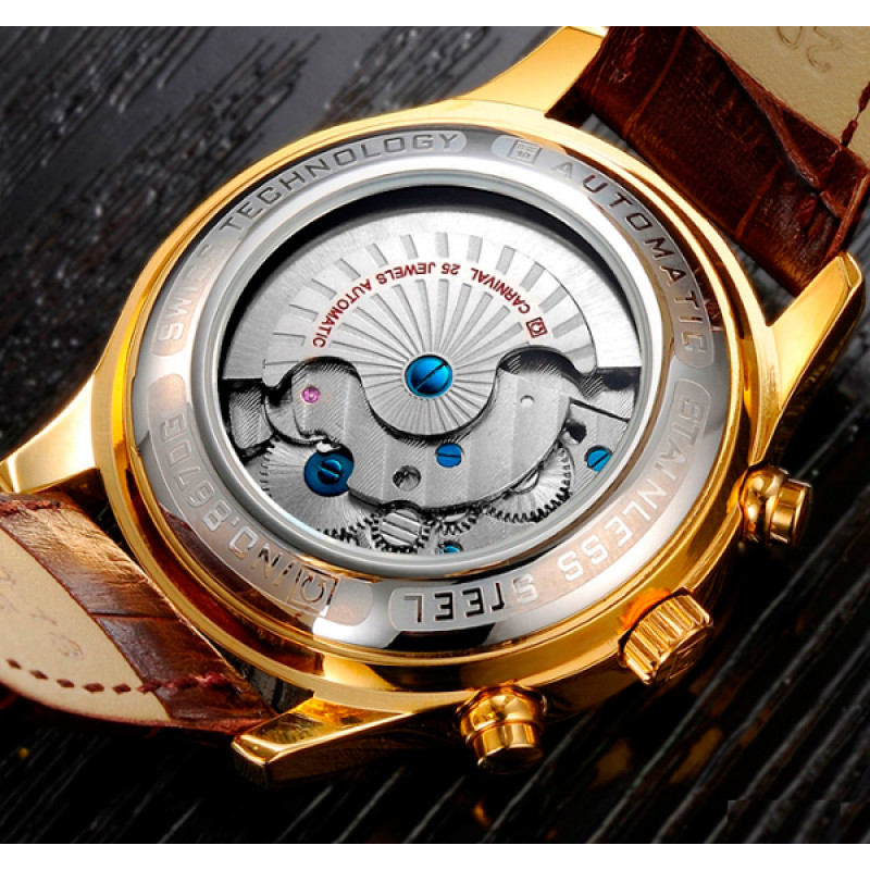 Чоловічі механічні годинники Carnival – це втілення престижу та надійності у кожній деталі. Оснащені високоточним японським механізмом із 25 каменями, вони забезпечують стабільну та довговічну роботу. Завдяки сапфіровому склу годинник стійкий до подряпин і зберігає бездоганний вигляд протягом багатьох років.