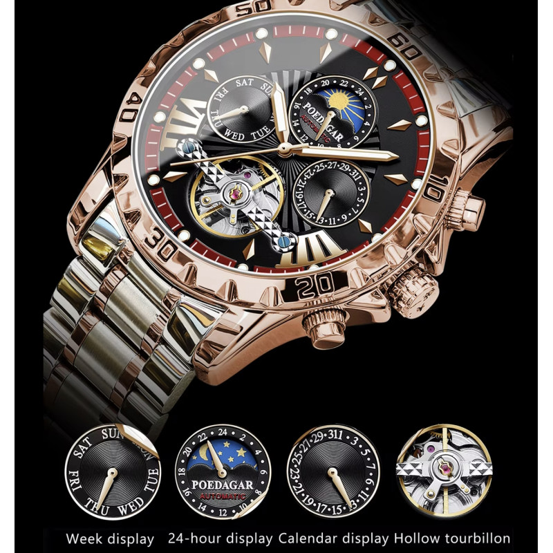 Poedagar - молодий бренд класичних годинників. В Україні представлений ексклюзивно вперше. Перевагою бренду Poedagar є висока якість комплектуючих, надійність механізму, а також цілком доступна вартість. Poedagar Mechanical - інноваційна мехнічна новинка, яка, окрім неперевершеного зовнішнього вигляду, має надійний японський механізм.