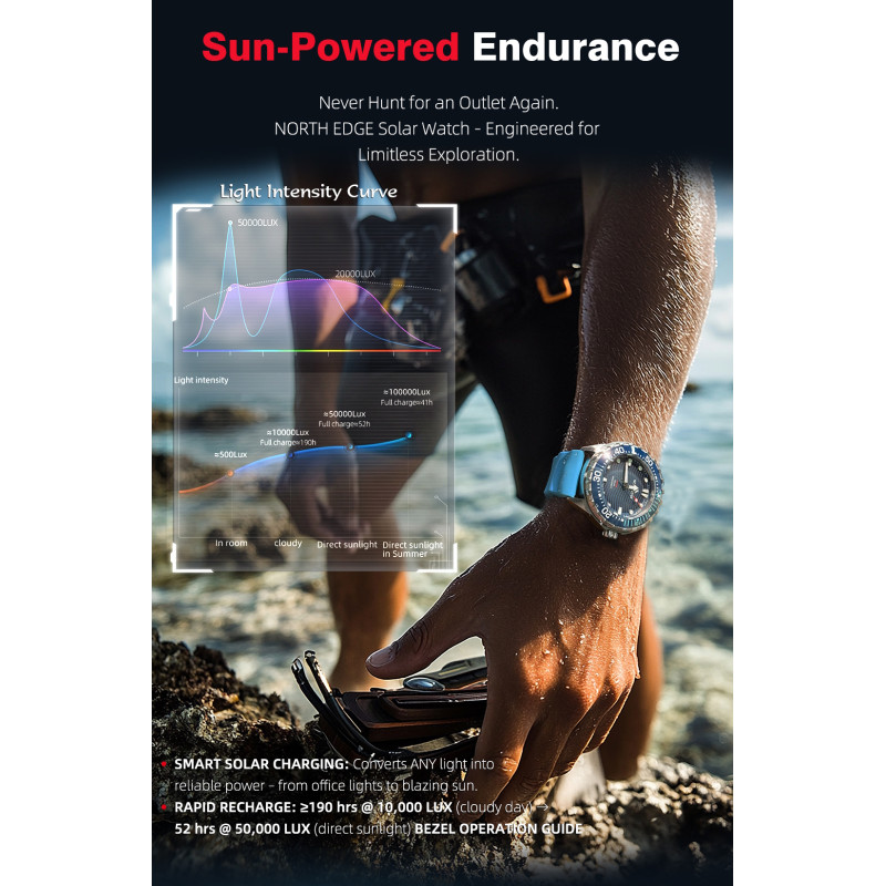 North Edge - це бренд тактичних годинників, які спеціально розроблені для військових, пілотів, моряків і т.д., які працюють в надскладних умовах. Ці годинники призначені для використання в екстремальних ситуаціях, де точність, надійність та функціональність є критичними.