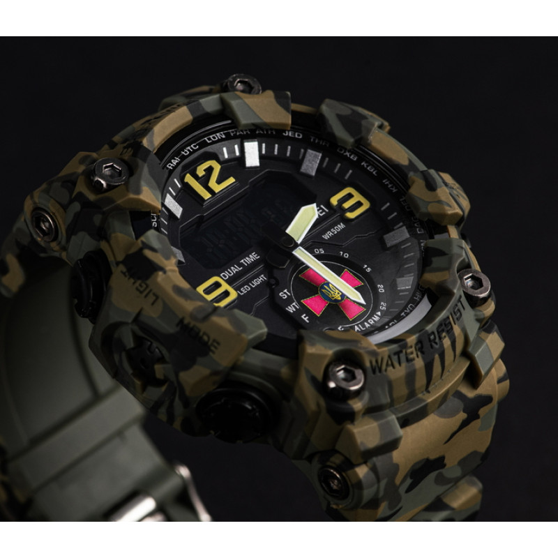 | Функції | Герб ЗСУ, секундомір, будильник, підсвічування, дата, день тижня, місяць, другий час (Dual Time) |