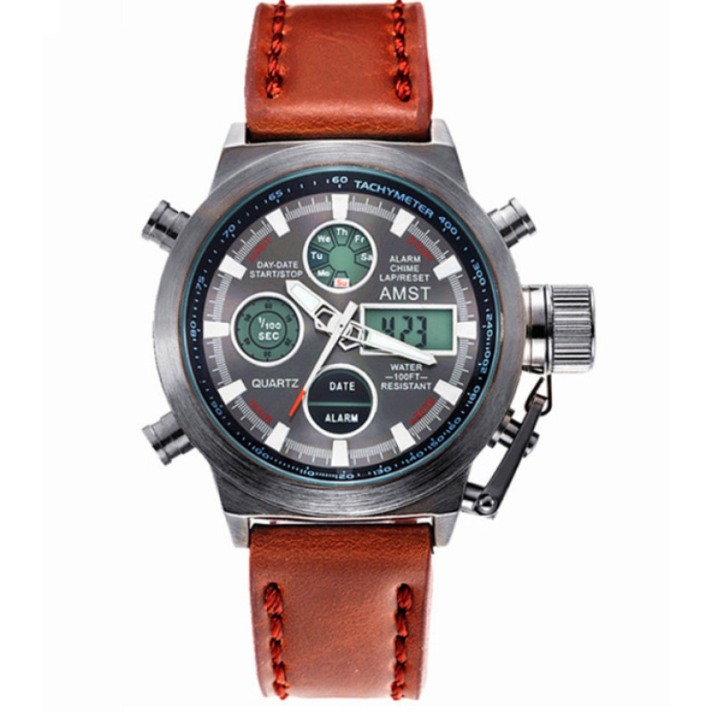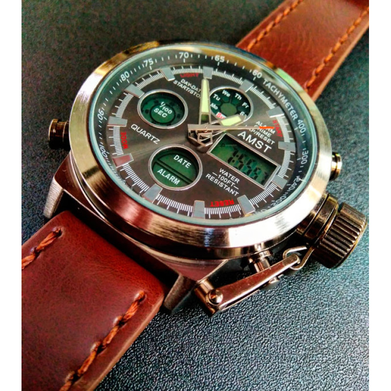 AMST - легендарний бренд чоловічих тактичних годинників, його «фішка» - мілітарі-дизайн, який простежується в кожній моделі. Годинники витримують підвищені навантаження і низькі температури.