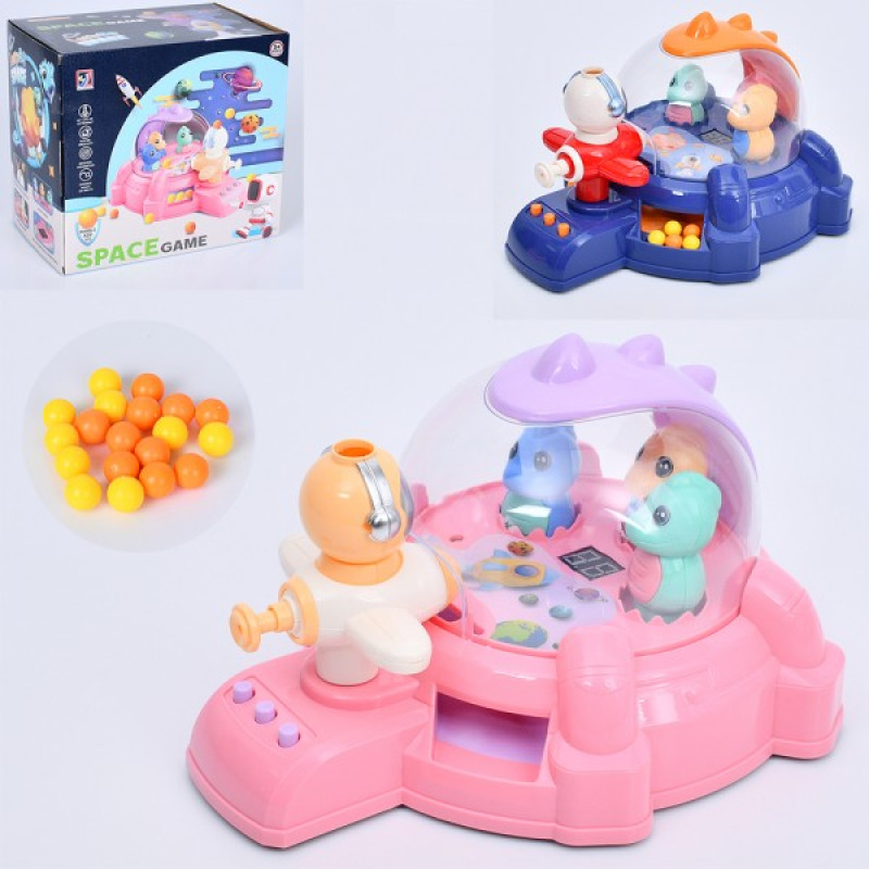 Дитячий ігровий автомат FG240428073Q. Смикнувши за ручку, можна спостерігати які картинки випадають при обертанні барабанів, а при збігу виграшної комбінації з отвору посипляться "гроші".