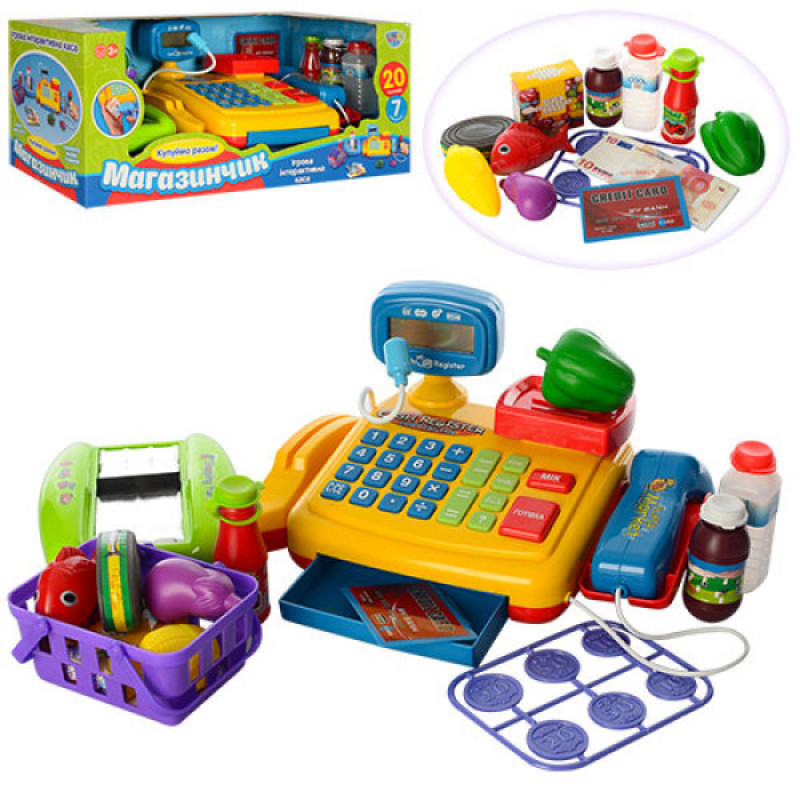 Якщо ваша дитина активно допомагає вам у походах до магазину та придбання продуктів, то дуже вдалим подарунком для неї може стати дитячий ігровий касовий апарат Limo Toy 7018-UA . Касовий апарат затягує монети, реагує на відбиток пальця, світиться, видає звуки англійською. Також у комплекті йде калькулятор, термінал. Зроблений у вигляді валізи на колесах.