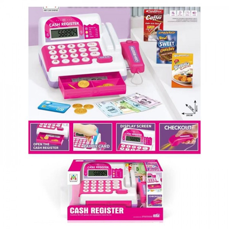Якщо ваша дитина активно допомагає вам у походах у магазин та придбанні продуктів, то дуже вдалим подарунком для неї може стати дитячий ігровий касовий апарат LS820A73. Касовий апарат затягує монети, реагує на відбиток пальця, світиться, видає звуки англійською. Також у комплекті йде калькулятор, термінал. Зроблений у вигляді валізи на колесах.