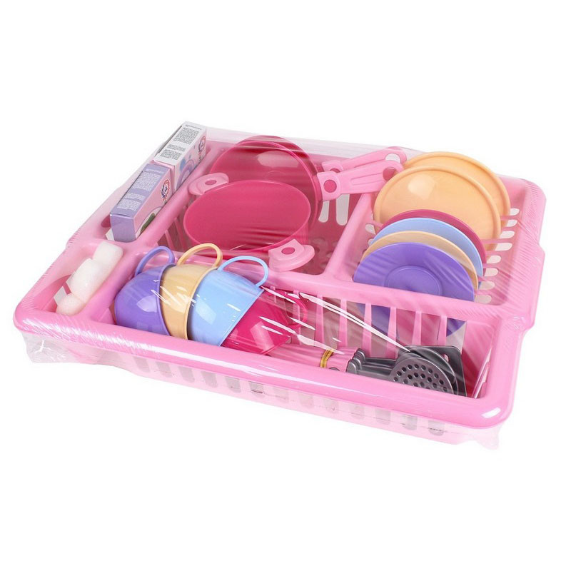 Чудовий подарунок для Вашої маленької господині - іграшковий набір посуду в зручній сушці. Яскраві кольори неодмінно привернуть увагу малюків, а різноманіття посуду та аксесуарів викличуть справжнє захоплення.