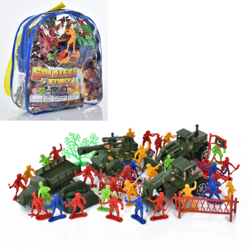 У наборі 32 фігурки солдатів, 4 одиниці військової техніки та різні елементи середовища, що дозволяють створювати власні бойові сценки та стратегічні сценарії. Всі деталі виготовлені з міцного пластику, безпечного для дітей.