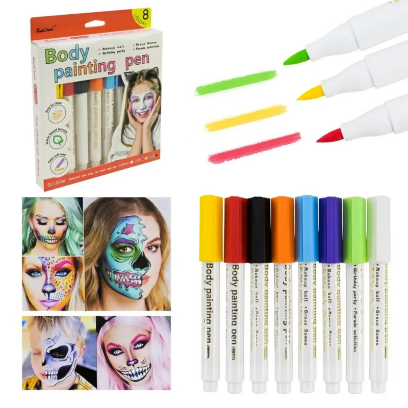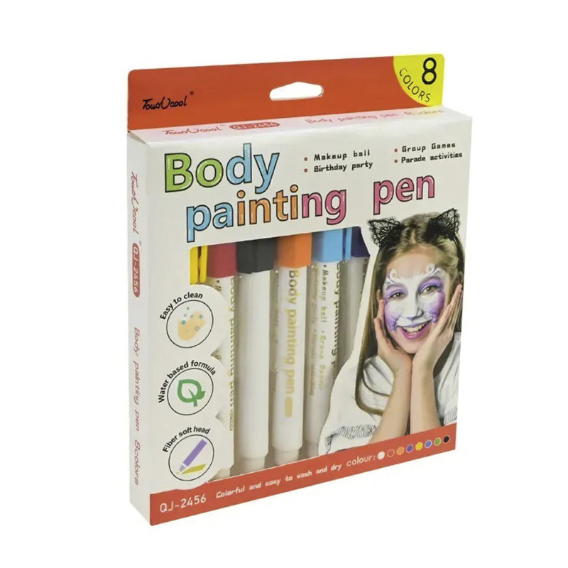 У наборі 8 яскравих кольорів, які можна поєднувати між собою для створення унікальних образів. Аквагрим легко наноситься та змивається водою після використання.