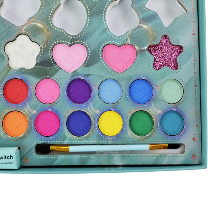 Яскравий аксесуар у вигляді браслета з намистин та резиночка для волосся стануть стильним доповненням до образу, а підсвічування палетки створює справжній вау-ефект! (працює від вбудованих батарейок)