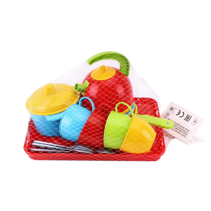В комплект входить також чайний сервіз на 4 людини, 4 ложки, чайник, каструля і сковорода.