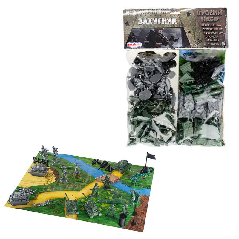 Солдатики "Захисник" No3. Буде улюбленою грою для вашого хлопчиська! Такий реалістично виконаний набір з цілої армії підготовлених відважних солдатів, танків, вертольотів, спец спорядження та навіть тактичної карти не залишить противнику ні найменших шансів на перемогу!