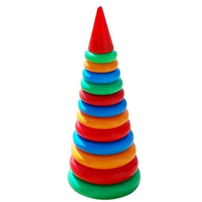Іграшка Bamsic Пірамідка 019-1. Ця логічна іграшка познайомить дитину з геометричними фігурами й кольорами. Крім того, дитині потрібно буде знайти для кожної фігурки місце на підставі виходячи з кількості дірочок у фігурці і стовпчиків у підставі.