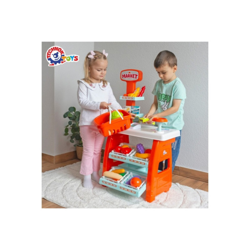 Іграшка допоможе дітям знайомитися з різними продуктами, створювати цікаві сценарії та навіть вчитися розподіляти товари. Завдяки ретельно продуманим деталям і яскравому дизайну, "Маркет ТехноК" стане улюбленим місцем для гри, де малюк може обирати, купувати або продавати — все, як у справжньому магазині!