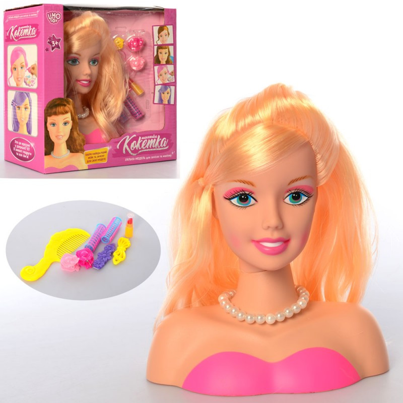 Лялька-манекен для створення зачісок 323-3 strong>є іграшковим бюстом. У ляльки довге шовковисте волосся. Її власник зможе тренуватися робити на ній різні зачіски та освоювати перукарське мистецтво. Він зможе розчісувати їй волосся, прикрашати різнокольоровими пасмами та шпильками. Також дитина зможе наносити ляльці макіяж. Рекомендовано дітям від 3 років.