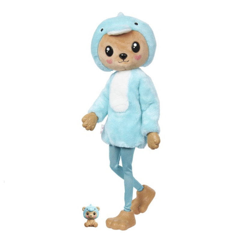 Лялька ігрова HRK-24 з 10 сюрпризами в 1 упаковці дарують наймиліші враження від розпакування плюшевих друзів-звірят, модного вбрання та веселих перевтілень. У коробці ви знайдете чарівного ведмедика в костюмі дельфіна з плюшу – такий милий! Зніміть голову костюма - всередині ховається сюрприз стильна лялечка з довгим білявим волоссям з блакитним пасмами, 11 рухливими шарнірами та яскравим макіяжем на обличчі!