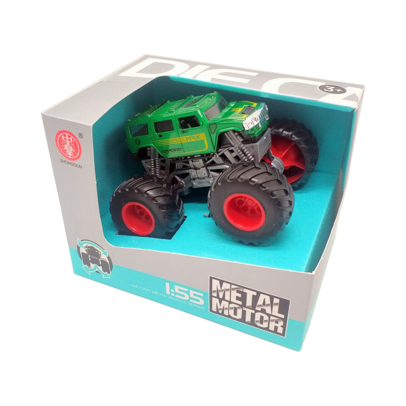 Зменшена відомого монстр-трака, який зможе подолати будь-який рельєф завдяки своїм величезним колесам. Завдяки міцному металевому корпусу машинка не поступається міцності її прообразу і може витримати суворі випробування подорожей бездоріжжям в іграх маленького дослідника. Поставлений на базу монстр-траку з величезними колесами Ваш джип долатиме всі перешкоди і прокладатиме дорогу в будь-якій пісочниці та серед густих уявних джунглів у траві, виконуватиме неймовірні трюки, перестрибуючи піщані прірви та калюжі. Розмір машинки 9х6х5.5 см