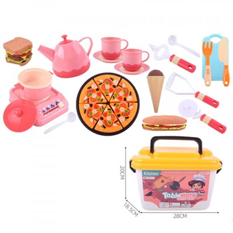 Набір продуктів 777-1B – захоплююча гра для юної господині. Вона сприяє розвитку уяви, комунікативних навичок, творчого підходу до речей, вчить правильному поводженню з їжею, культурі приготування їжі, основам сервірування та іншим корисним навичкам. Така забава дозволить поповнити словниковий запас дитини та відчути себе в ролі дорослого: побути кухарем у ресторані, дбайливою мамою на кухні, продавцем у супермаркеті. Іграшковий продуктовий набір виготовлений з якісної та безпечної пластмаси. Усі складові мають реалістичну форму та забарвлення.