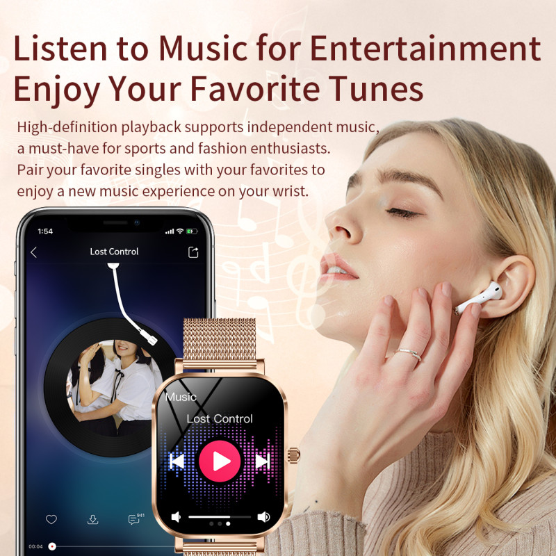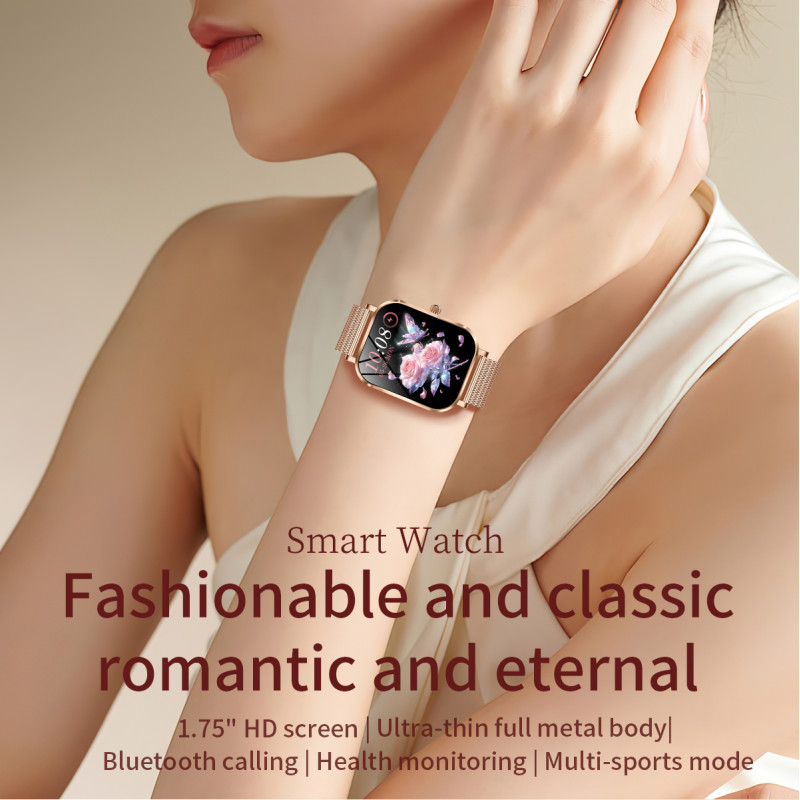 Smart Miami - новітній жіночий годинник від UWatch з елегантним дизайном. Новинка оснащена процесором нового покоління та великим дисплеєм. Smart Miami має неперевершений дизайн та чудово доповнить Ваш образ. Функції включають вимірювання пульсу, рівня кисню в крові, жіночий календар, моніторинг сну, безліч спортивних тренувань, керування музикою, Bluetooth-дзвінки.