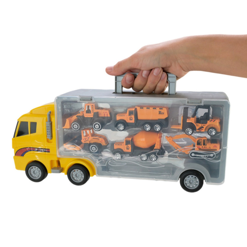 Трейлер із машинками — це захоплюючий набір, який неодмінно сподобається маленьким автолюбителям! У комплект входить трейлер із машинками у вигляді будівельої техніки, що робить гру ще більш цікавою та різноманітною. Трейлер виготовлений з високоякісного пластику, стійкого до пошкоджень, що гарантує довговічність іграшки навіть під час активних ігор. Цей набір розвиває уяву, координацію рухів та дозволяє дітям вигадувати власні автопригоди. Ідеально підходить для гри вдома або на свіжому повітрі. Подаруйте своїй дитині години захопливої гри з цим трейлером і машинками!