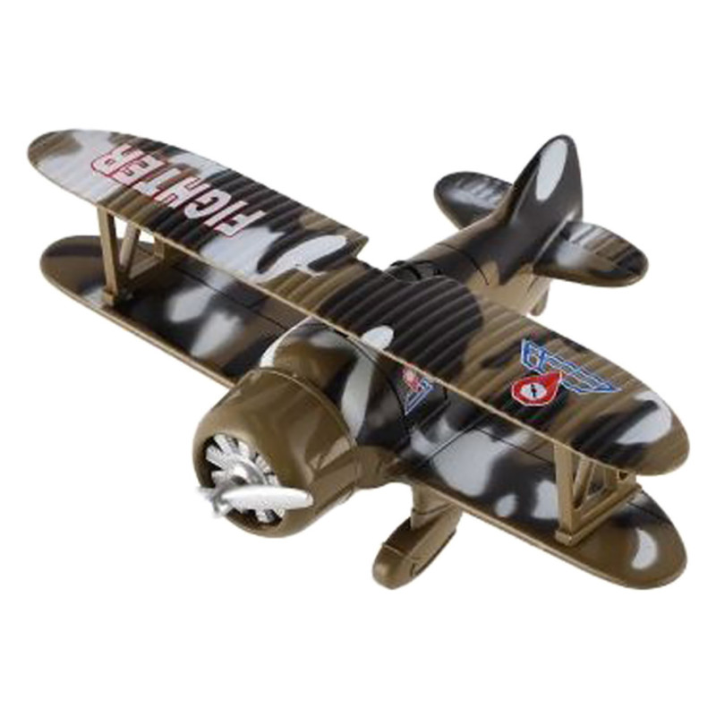 Якщо відвести літачок назад, його інерційний механізм буде рухати літак вперед, а пропелер, розташований у передній частині, буде обертатись під час руху.