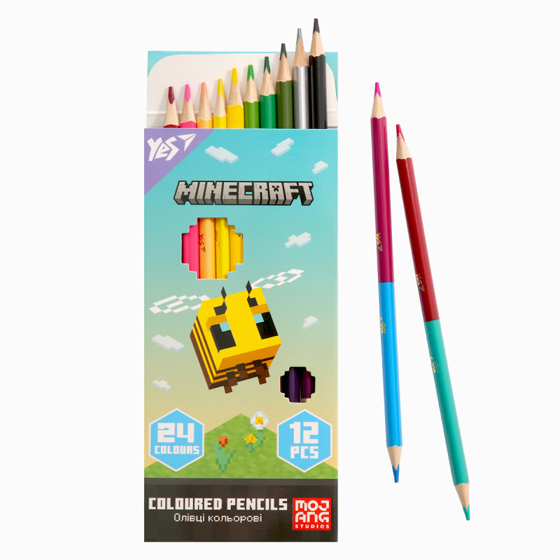 Набір кольорових олівців YES Minecraft Spring 290775 24 кольори 12 шт