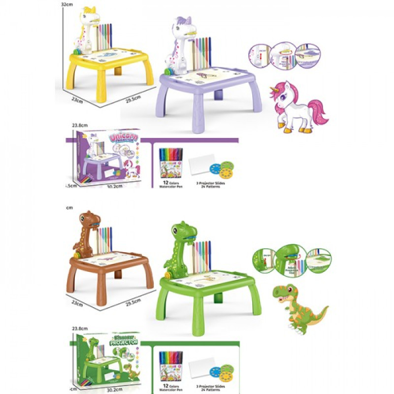 Для малювання проектує кольорове зображення зі спеціальних насадок на дошку. Завдяки чітким видимим контурам дитина зможе їх обводити та малювати різні малюнки.Характеристики: