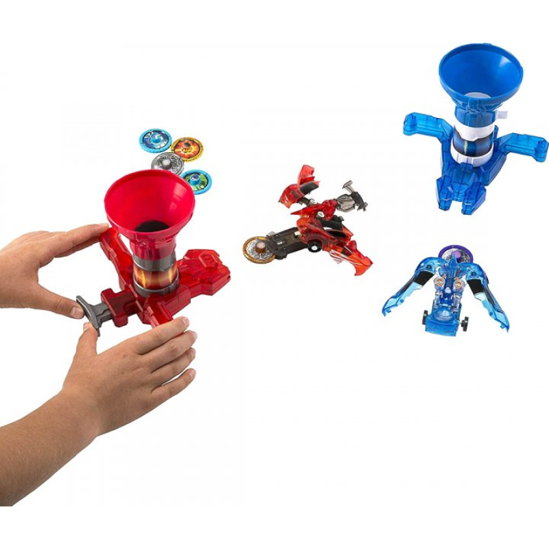 З набором Ігровий набір Подвійний удар EU683314 ви отримуєте не тільки скричерів, які трансформуються в особливих тварин, але також спеціальні пристрої, які допоможуть швидко, головне точно запускати диски, роблять гру комфортнішою та результативнішою.