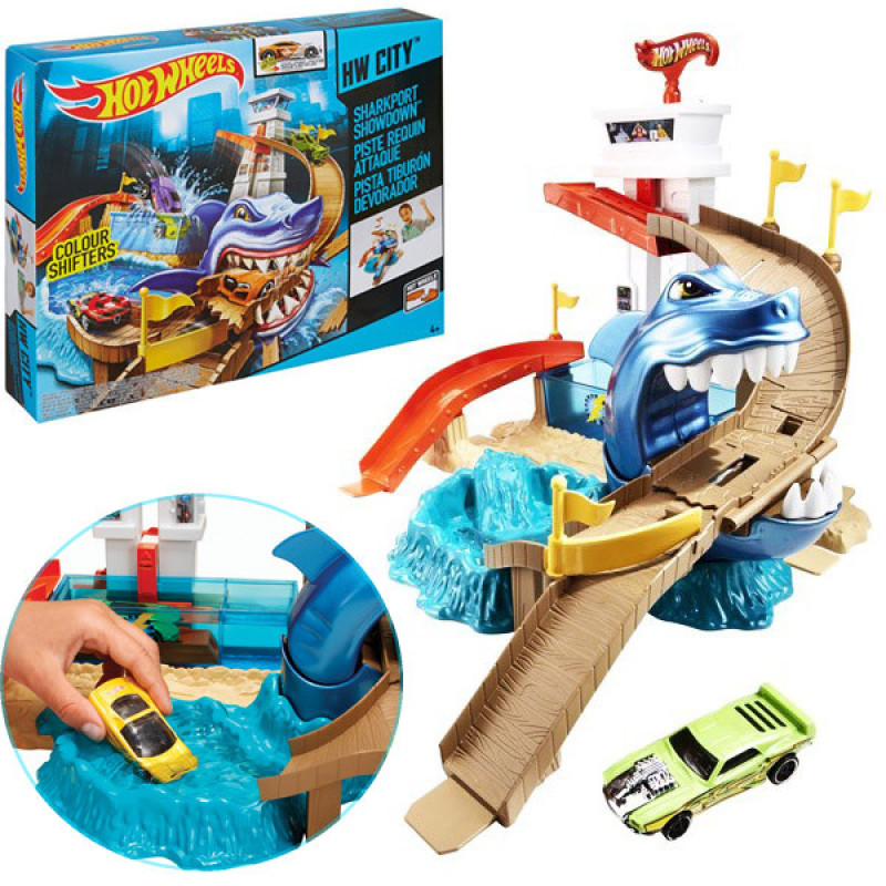 Трек з машинками Полювання на акулу BGK04 - це одні з улюблених іграшок для хлопчиків. За допомогою ігрових машин дитина зможе придумати безліч ігор. Дитина зможе розвивати свою фантазію і творчий потенціал. Іграшковий трек крутий набір для хлопчика, який захоплюється автомобілями і гонками. Вийде не потрапити в пащу акули? Ну що, полювання почалося! І пам'ятай, у тебе є перевага, адже колір машинки можна змінити. Запитаєш, як? Колір стане інший під впливом температури (холодна / тепла вода). Трек Полювання на акулу складається з треку, 1-й машинки Color Shifters, перемикача, пащі акули і 2-х басейнів. В один басейн можеш набрати теплу воду, а в іншу - холодну, тим самим змінивши колір машини. Граючи у дитини розвивається дрібна моторика, уява і фантазія.