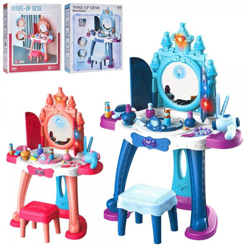 Трюмо дитяче 8223A-B - це відмінний ігровий центр для дівчаток у вигляді туалетного столика. У комплект з трюмо входять фен і додаткові аксесуари. Ваше маля зможе милуватися на своє відображення в дзеркалі і чепуритися. Граючи з трюмо дівчинка почуватиметься справжньою принцесою.