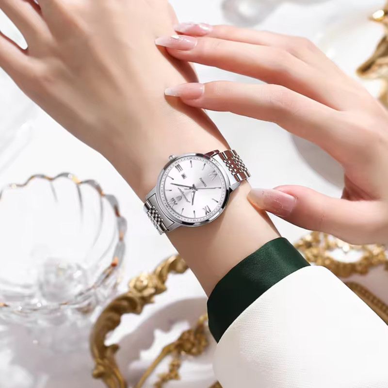 Якісні матеріали: нержавіюча сталь, міцне мінеральне скло, надійні кварцові механізми.