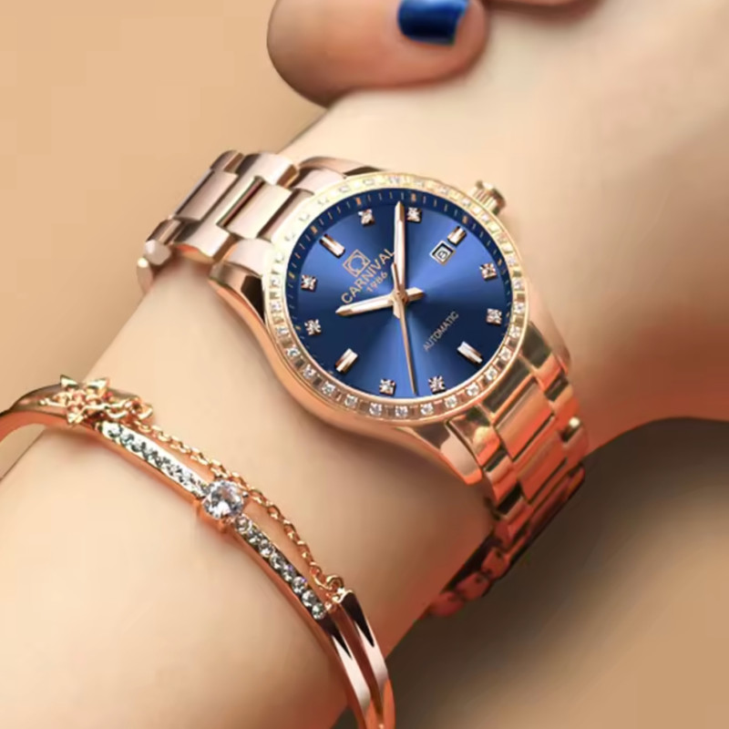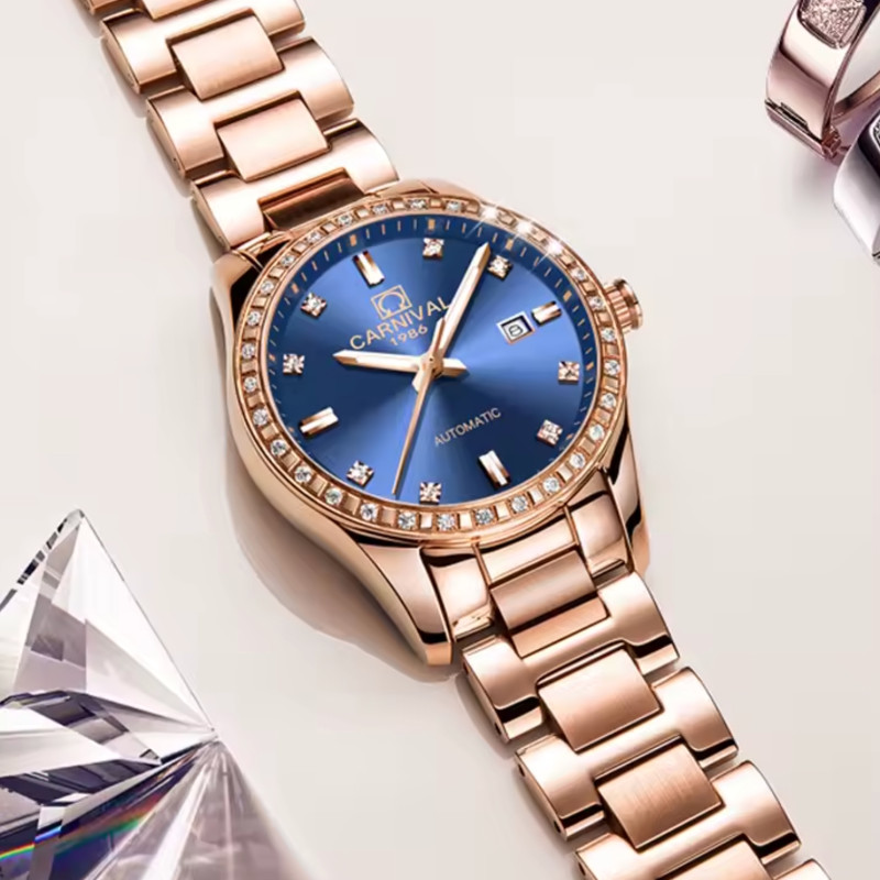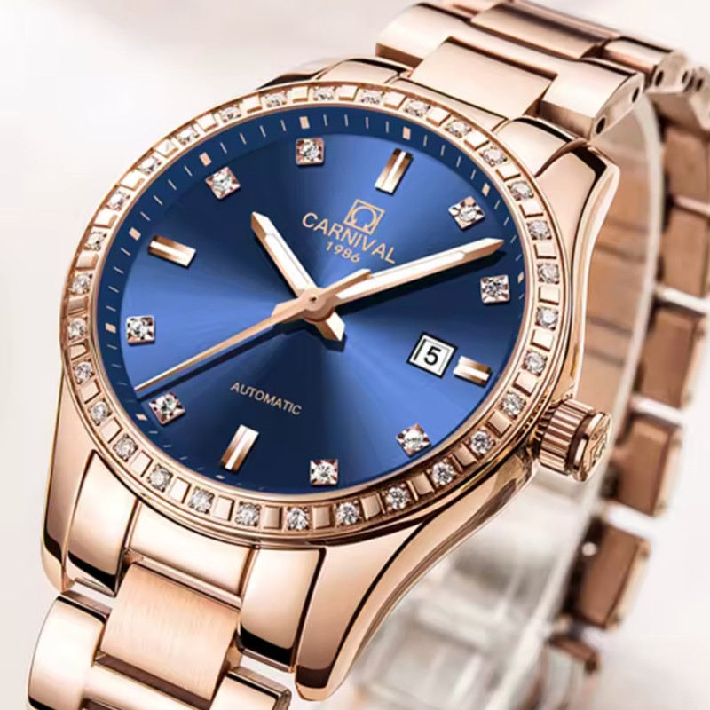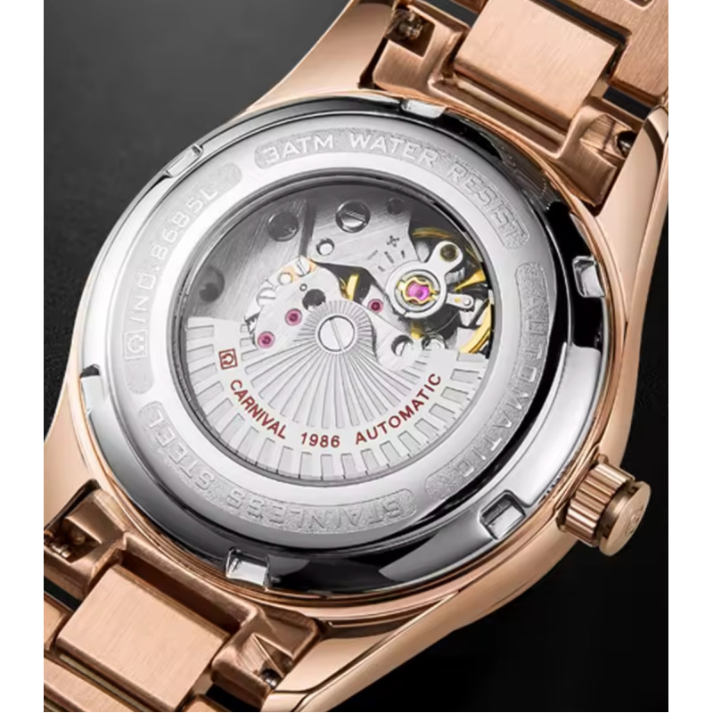 Жіночі механічні годинники Carnival – це втілення престижу та надійності у кожній деталі. Оснащені високоточним японським механізмом із 25 каменями, вони забезпечують стабільну та довговічну роботу. Завдяки сапфіровому склу годинник стійкий до подряпин і зберігає бездоганний вигляд протягом багатьох років.